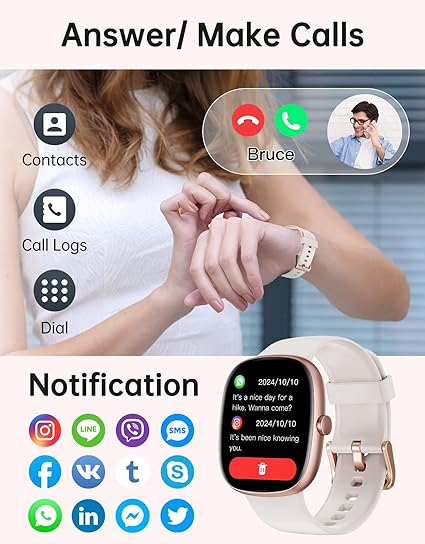 - More Practical Features: This smartwatch offers a variety of practical tools, including music control, alarm clock, stopwatch, calculator, find phone, weather forecast, female cycle tracking and so on.